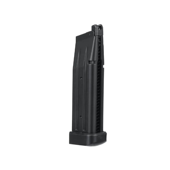 The Arcturus Vanguard 4.3" Hi-Capa is a gas blowback pistol built for performance and efficiency. Firing at 330–350 FPS with 0.20g BBs, it features Safe and Semi-Auto fire modes. Constructed with ten high-grade MIM steel parts and a durable nylon-fiber stippled grip, it ensures reliability and comfort. Compatible with standard upgrade parts, it’s designed for improved air efficiency and longevity. The SEFP magazine features reinforced feed lips, follower, and base plate for enhanced durability in the field.