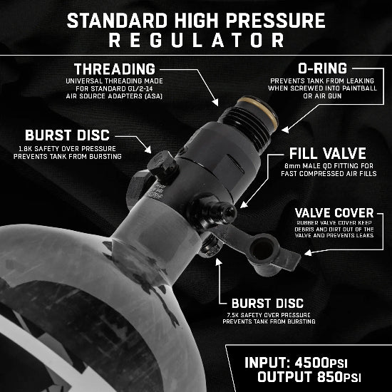 The HK Army AeroLite 48ci Air System has been developed with performance and affordability in mind. The comprehensive system pairs a lightweight carbon fiber bottle and a reliable aluminum regulator with an output pressure of 800 psi. The AeroLite system includes a 5-year hydro cycle and is available in 4 color options.